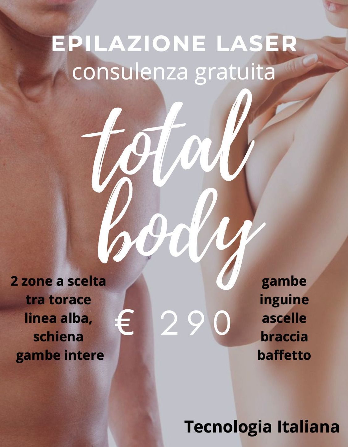 PER UOMO 2 zone a scelta tra : torace, linea alba, schiena, gambe interne a 290 euro